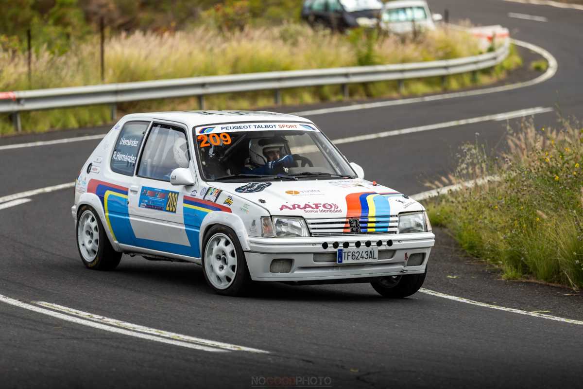 Problemas mecánicos en el Peugeot 205 Rallye propicia que Isaac Hernández dude si ascender o no a Los Loros