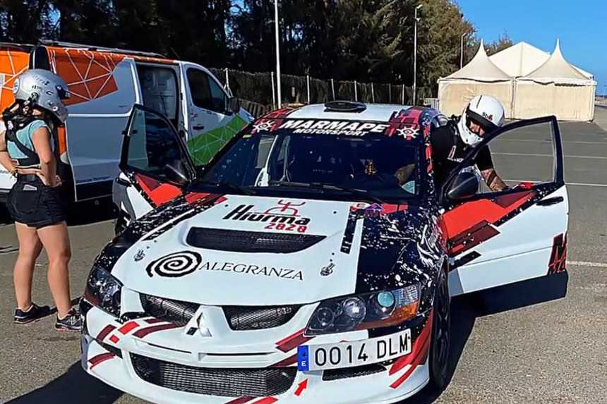 El piloto lanzaroteño Marcial Álvarez y la copiloto grancanaria Tardía Santana realizaron un test en el circuito de Maspalomas con e Mitsubishi Lancer Evo VIII con el que competirán en el RallySproint Era del Cardón.