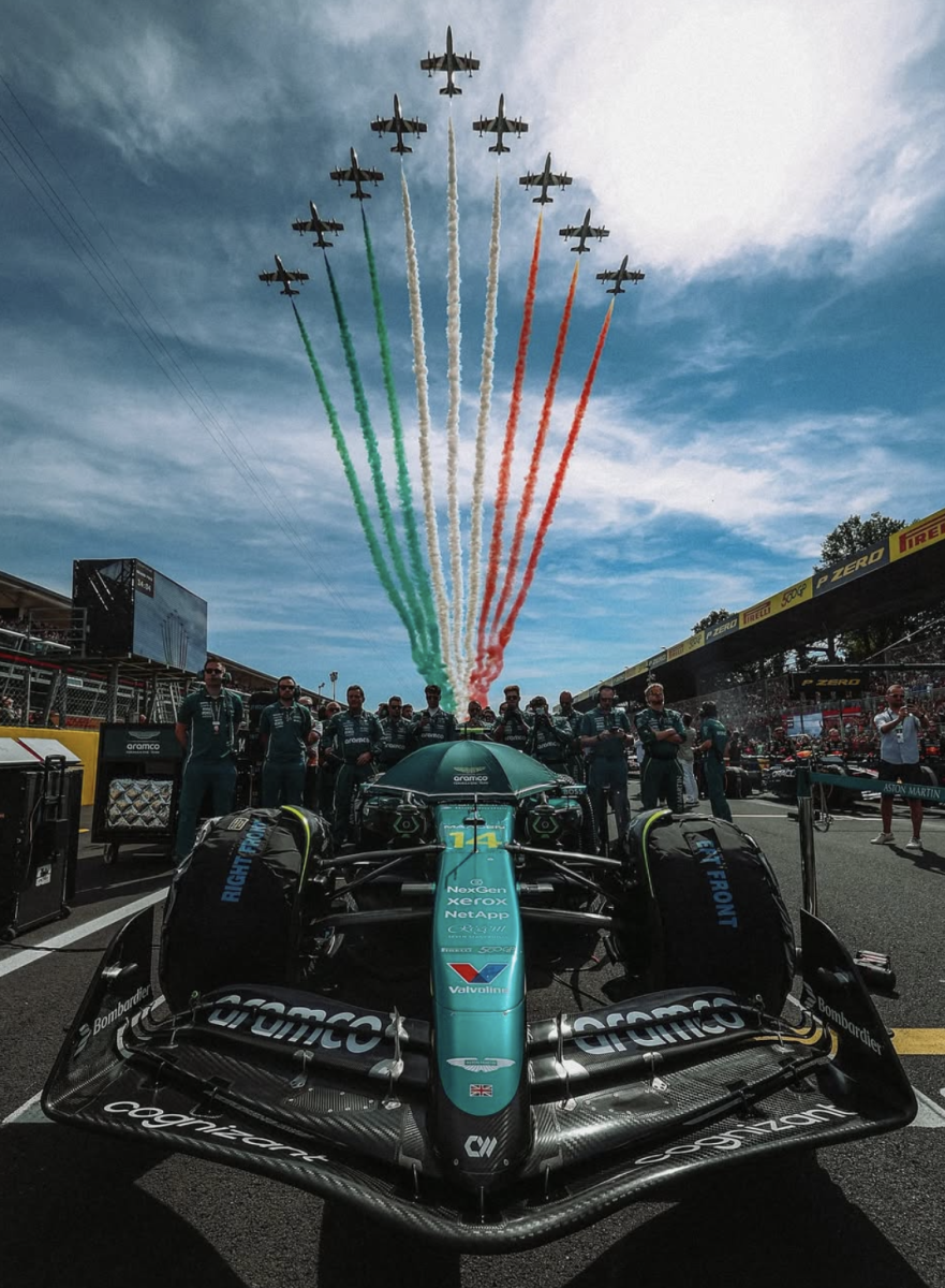 La suspensión del Aston Martin del español Fernando Alonso le impidió seguir con su pelea por los puntos en el Gran Premio de Italia después de haber sido octavo en la clasificación del sábado en el circuito de Monza.