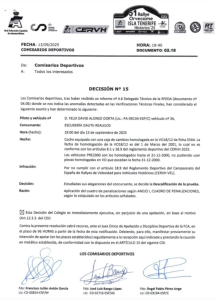 Los Comisarios deportivos, tras haber recibido un informe n° 4.6 Delegado Técnico de la RFEDA (documento n° 04.06) donde se nos indica las anomalías detectadas en las Verificaciones Técnicas Finales, han considerado el siguiente asunto y han determinado lo siguiente: