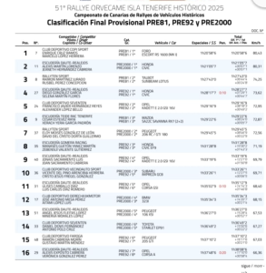 Malas noticias para los ganadores del Rally Isla de Tenerife Histórico, los tinerfeños Félix David Alonso y Juan Ramón Chávez, puesto que los comisarios deportivos de la cita del Campeonato de España de Rallyes de Velocidad (CERVH) han decidido descalificarlos por no estar la homologación de su Citroën Saxo VTS conforme al reglamento deportivo del CERVH 2025.