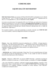 - Que bajo la obligación moral y deportiva, el equipo participante, los patrocinadores y colaboradores, han considerado conjuntamente, la necesidad de presentar este comunicado de forma pública, con el fin de exponer y aclarar los hechos ocurridos en el presente rallye.