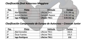 El joven piloto gallego Iago Rodríguez despidió este fin de semana en Maggiora (Italia) su primera temporada completa en el Campeonato de Europa de Autocross con un meritorio tercer puesto, tanto en la última cita como en la clasificación general del certamen continental.