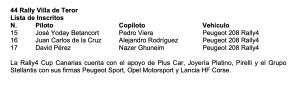 Con este Rally Villa de Teror comienza la segunda parte de la Rally4 Cup Canarias. Tras la prueba grancanaria, al certamen sólo le quedará el Rally Villa de Teguise (Lanzarote – 18 de octubre) y el Rally de Maspalomas (Gran Canaria – 1 de noviembre). Los 3 equipos del fin de semana volverán a contar con el Peugeot 208 Rally4 como arma para luchar por sus intereses, un vehículo que seguirá agradando a los espectadores y que volverá a mostrar sus prestaciones en un rally que siempre se ha mostrado muy exigente con los deportistas y sus máquinas.