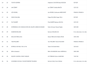 Publica os la lista de inscritos del Rally Europa Central 2025, Campeonato del Mundo de Rallys (WRC).