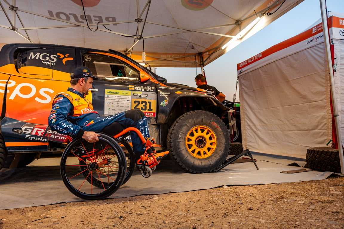 Por fortuna, llevaban los recambios necesarios en su pick-up y Txema Villalobos, haciendo gala de su condición de excelente mecánico, ha podido reparar el coche en poco menos de una hora. Con todo, Isidre Esteve ha podido seguir adelante, aunque en condiciones muy delicadas, sin frenos traseros, pero manteniendo el ritmo competitivo y sin cometer errores hasta cruzar la meta en Villafranca de los Barros (Badajoz) en la 31ª posición en la categoría Ultimate. En la general, conserva el 27º puesto. Una muestra más de su capacidad de superación.