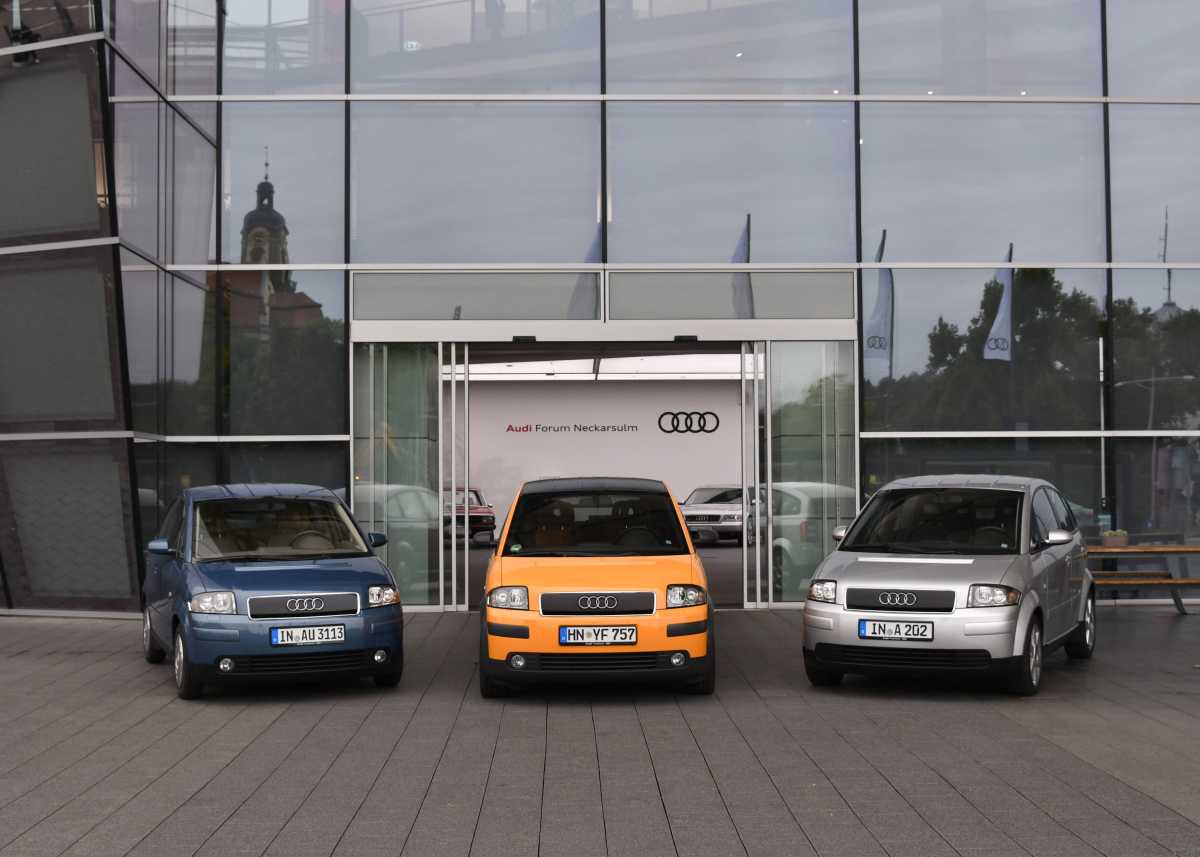 En el IAA de septiembre de 1999 se presentó al mundo el A2 desarrollado para producción en serie: el primer coche compacto de la historia reciente cuya carrocería estaba fabricada íntegramente en aluminio. La carrocería del A2, incluidas las cuatro puertas y el portón trasero, pesaba únicamente unos 153 kg, es decir, alrededor del 60% del peso de la carrocería de un sedán comparable con una carrocería convencional de acero. El Audi A2, con 3,83 metros de longitud, 1,67 metros de anchura y 1,55 metros de altura, ofrecía un amplio espacio para sus ocupantes a pesar de sus reducidas dimensiones exteriores, y se producía en Neckarsulm. Para el A2 se construyeron allí nuevas instalaciones de producción, inauguradas el 15 de noviembre de 1999. Ese mismo día, Audi presentó también el A2 1.2 TDI, el primer automóvil de cuatro puertas con un consumo de solo 3 l/100 km.