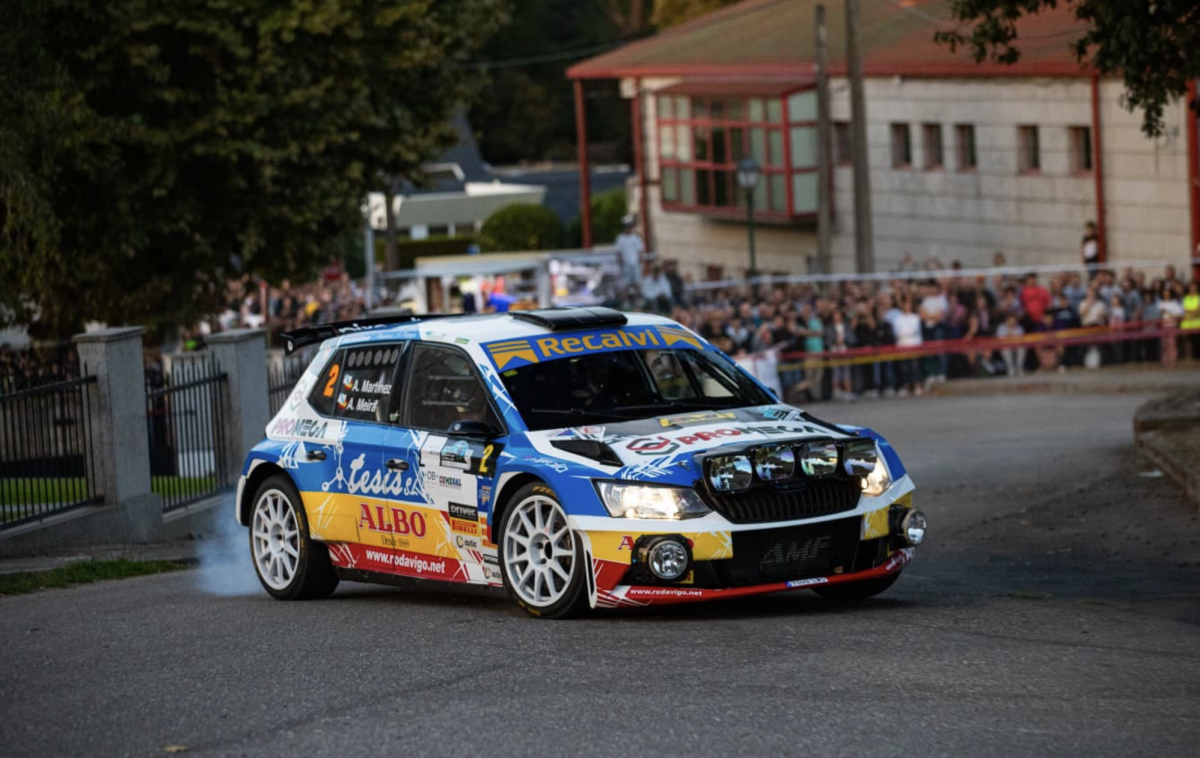 La dupla del Skoda imprimió un fuerte ritmo desde el tramo urbano disputado el viernes para distanciarse de sus rivales. Por detrás, Javier Ramos también hacía lo propio asentándose en la segunda plaza en su estreno del Hyundai i20 N Rally2, con nueva carrocería tras el golpe de Dani Berdomás en el Sur do Condado.
