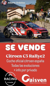 El piloto asturiano Alberto Ordóñez ha puesto a la venta el Citroën C3 Rally2 con el que esta temporada 2025 ha dominado y ganado la mayoría de pruebas donde ha estado presente.