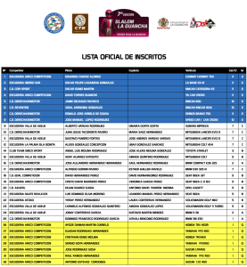 Publicamos la lista de inscritos del VII Slalom La Guancha, cita que contará con un total de 31 equipos inscritos, repartidos en 16 Carrozados, 8 Kart Cross y 7 Quads.