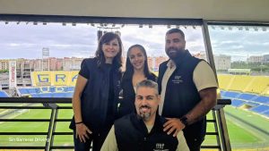 Ana González, presidenta de Sin Barreras Driving, Domingo Pulido, piloto, y Dani Ponce, presidente de la Federación de Automovilismo de Las Palmas (FALP), fueron entrevistado en la emisora oficial de la Unión Deportiva Las Palmas, donde se habló de la accesibilidad.