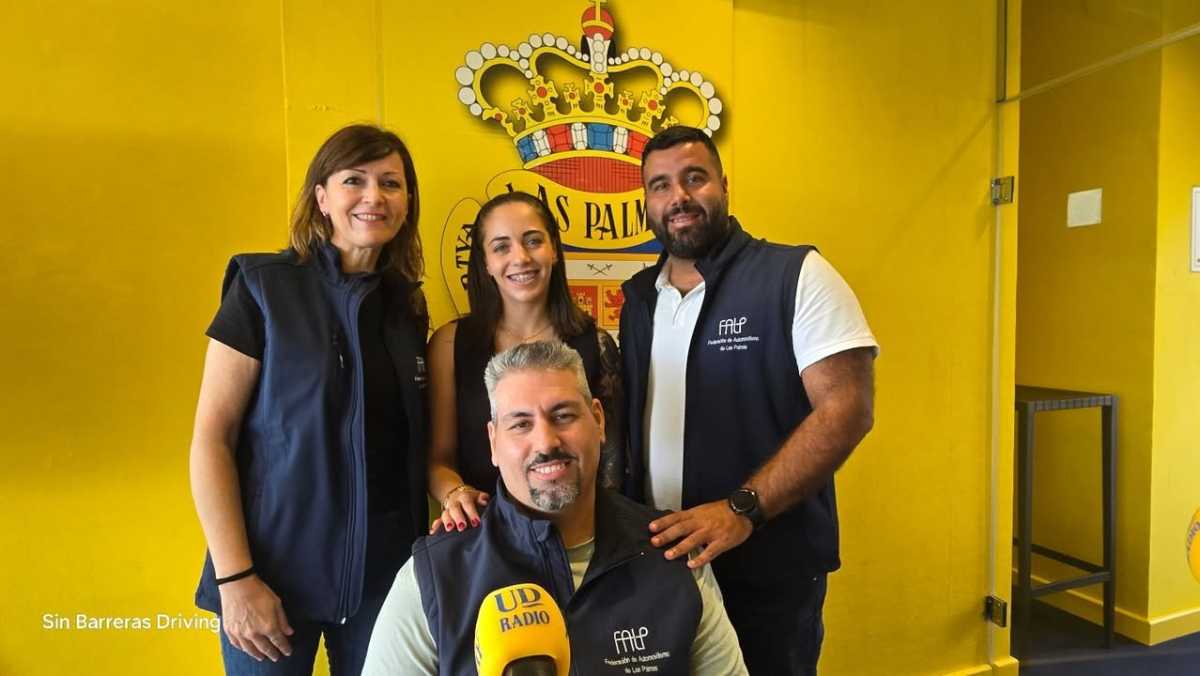Ana González, presidenta de Sin Barreras Driving, Domingo Pulido, piloto, y Dani Ponce, presidente de la Federación de Automovilismo de Las Palmas (FALP), fueron entrevistado en la emisora oficial de la Unión Deportiva Las Palmas, donde se habló de la accesibilidad.