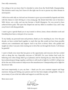 Les escribo para informarles que he decidido retirarme del Campeonato Mundial de Rally.