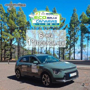 El copiloto majorero Jonathan Hernández se sentó a la derecha de Eduardo Martín en el Kia Niro HEV en el Eco-Rally Canarias, que se celebró en las islas de Tenerife y Gran Canaria. Lograron finalizar como primeros en eficiencia HEV