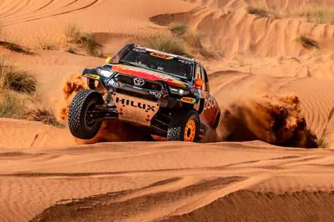 El Rally de Marruecos ha vivido este martes una de sus jornadas más exigentes para pilotos y mecánicas, con un trazado variado de piedra, arena y dunas. En este escenario, el Repsol Toyota Rally Team ha sabido sobreponerse a los contratiempos y alcanzar la meta tras completar los 306 kilómetros de una complicada especial.