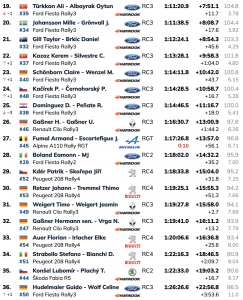 Ott Tänak se mantuvo cuarto con su Hyundai i20 N, a 1,5 segundos de Evans, mientras que Takamoto Katsuta se situó a solo 2,4 segundos en quinto lugar. Toyota ocupa ahora cuatro de los cinco primeros puestos y puede asegurar el campeonato de constructores este fin de semana si Hyundai no logra superarlo por seis puntos.