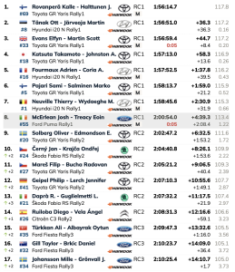 El incidente, similar al que puso fin al rally de Ogier hace 12 meses, dejó a Rovanperä en cabeza, a la vez que alteró el resultado del campeonato. Con la baja de Ogier, su compañero de equipo Elfyn Evans está provisionalmente en posición de tomar la delantera en el campeonato de pilotos, aunque Rovanperä también se mantiene firme en la contienda.