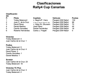 Y ante esa oportunidad, Yoday Betancort y Pedro Viera no fallaron. Los del Peugeot 208 Rally4 encadenaron su cuarto triunfo consecutivo y una nueva victoria en el TC Plus, sumando unos puntos que les avanza virtualmente el título en la primera edición de la Rally4 Cup Canarias cuando apenas resta una prueba para finalizar. Yoday y Pedro han sido, por tanto, el único equipo del campeonato en sumar victorias en las tres islas.