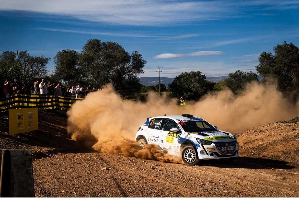 El lanzaroteño Javier Cañada y el grancanario Aday Ortiz (Peugeot 208 Rally4) sufrían una salida de carretera en el Rally RACC, no pudendo incorporarse a la carretera y tomando el camino del abandono.