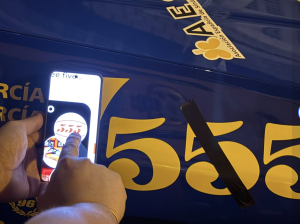 Ponemos dicha pegatina a la 9:21 de la noche en el parque cerrado y nos comentan que las 7 estarán por el vehículo. Moisés se presenta desde las 6:45 en el parque para que los verificadores revisen el vehículo de nuevo, tal y como se habló por teléfono.