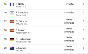 Mala carrera para los españoles Carlos Sainz y Fernando Alonso, que no pudieron terminar.