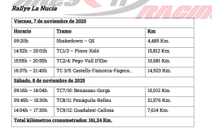 Antes de poner rumbo a La Nucía, Iván Ares comentaba sus sensaciones: “Nuestro objetivo, al igual que en el RallyRACC, es disfrutar, seguir recuperando ritmo y, si es posible, luchar por los puestos de honor como hicimos en Salou hace apenas quince días. Las sensaciones hasta ahora son muy positivas; el comportamiento del Toyota es espectacular y eso nos da mucha confianza para seguir progresando».