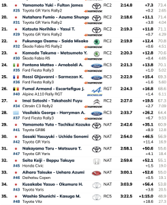 El líder del campeonato, Elfyn Evans, tuvo un comienzo cauto, sexto en la general y a ocho décimas de Rovanperä. El galés llega a Japón con una ventaja de 13 puntos sobre sus compañeros de equipo de Toyota, Ogier y Rovanperä, ambos empatados con 234 puntos, y podría asegurarse matemáticamente su primer título mundial este fin de semana.