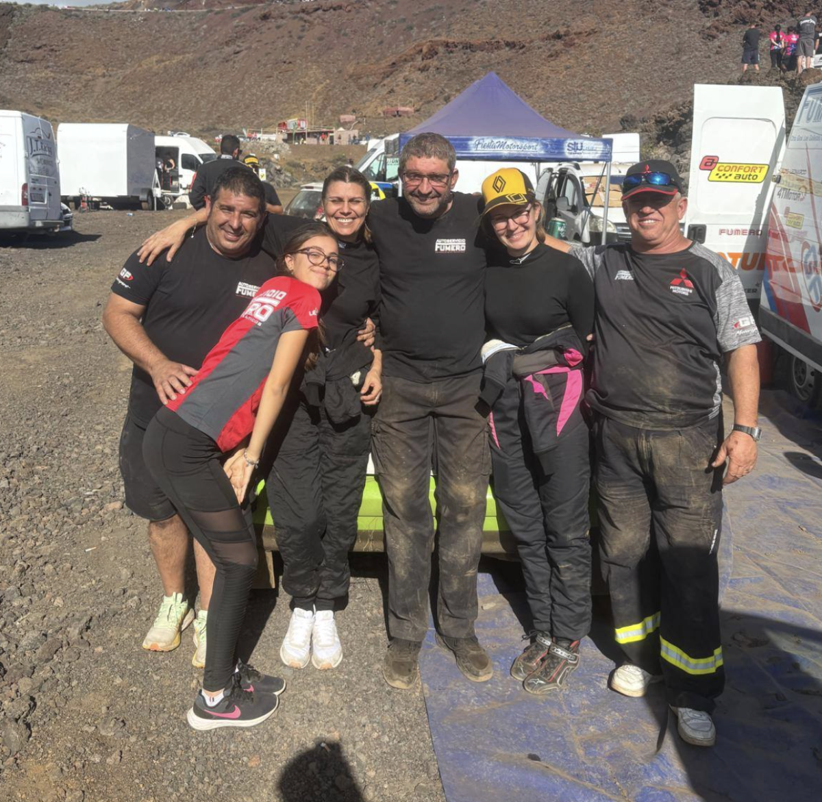 . Muy feliz de compartir con mi equipo y familia, aunque se me quedó una espinita, la de no poder ver y disfrutar de la espectacular conducción de Gustavo Fumero Fortes y mi niña Alejandra, que se iba a estrenar de copi.. Que sé que lo iban a bordar, porque es un circuito especial para él y es muy rápido ahí.