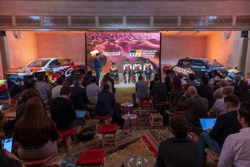 El evento, celebrado en un espacio ambientado en el desierto saudí, ha reunido a directivos de ambas compañías, especialistas del Repsol Technology Lab y a los pilotos que competirán el próximo enero con Toyota. La presencia del DKR GR Hilux ha permitido mostrar las mejoras introducidas en el vehículo, desarrollado bajo TOYOTA GAZOO Racing y diseñado para resistir las condiciones más extremas del Dakar.