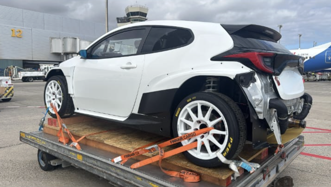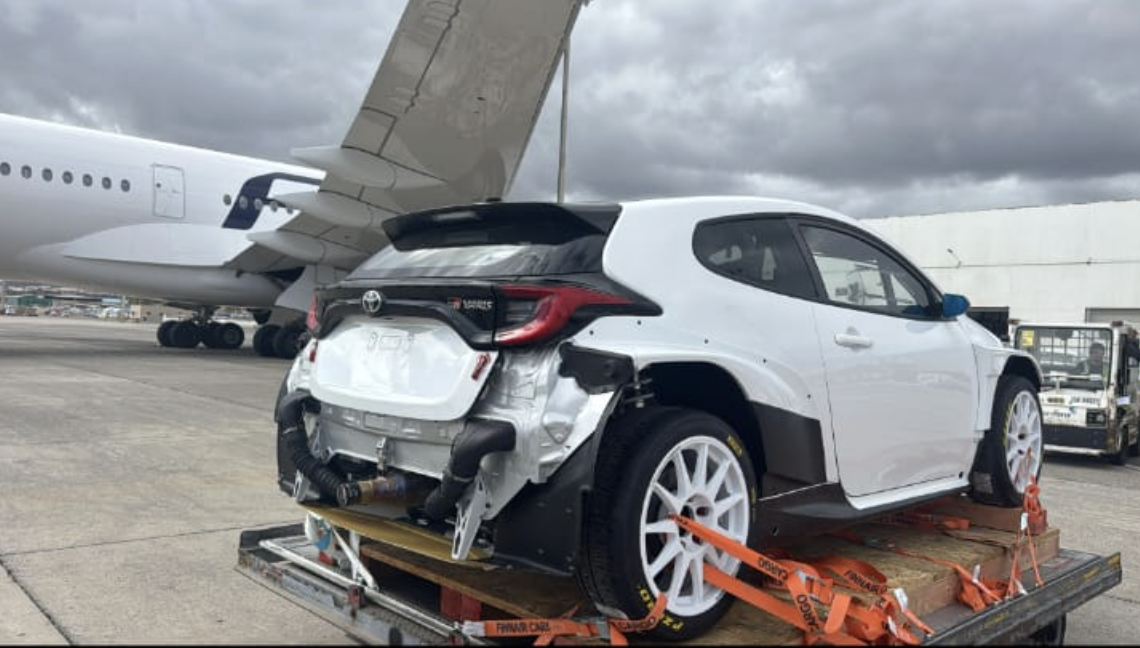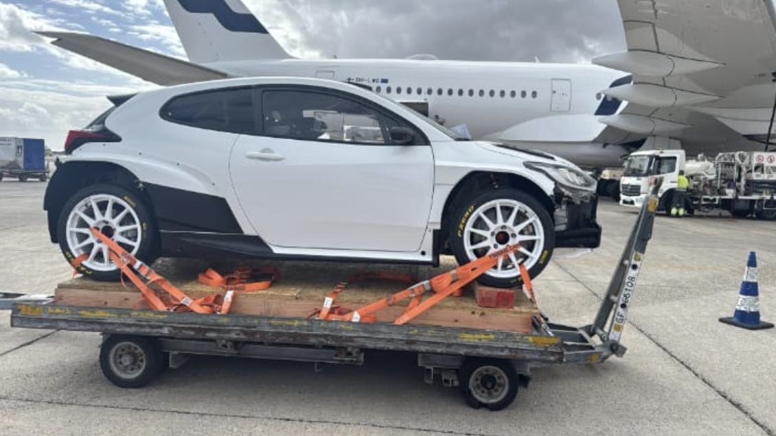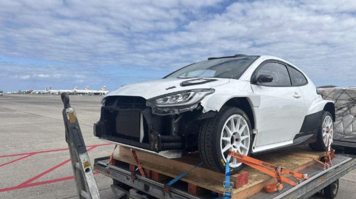 Días atrás llegaba a la isla de Gran Canaria un Toyota Yaris Rally2. Lo hacía vía aérea en el aeropuerto de ls isla, sin saber nadie de quién era.