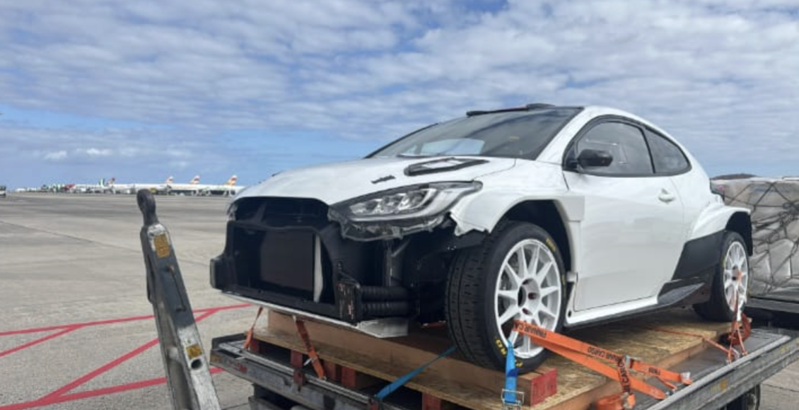 Días atrás llegaba a la isla de Gran Canaria un Toyota Yaris Rally2. Lo hacía vía aérea en el aeropuerto de ls isla, sin saber nadie de quién era.