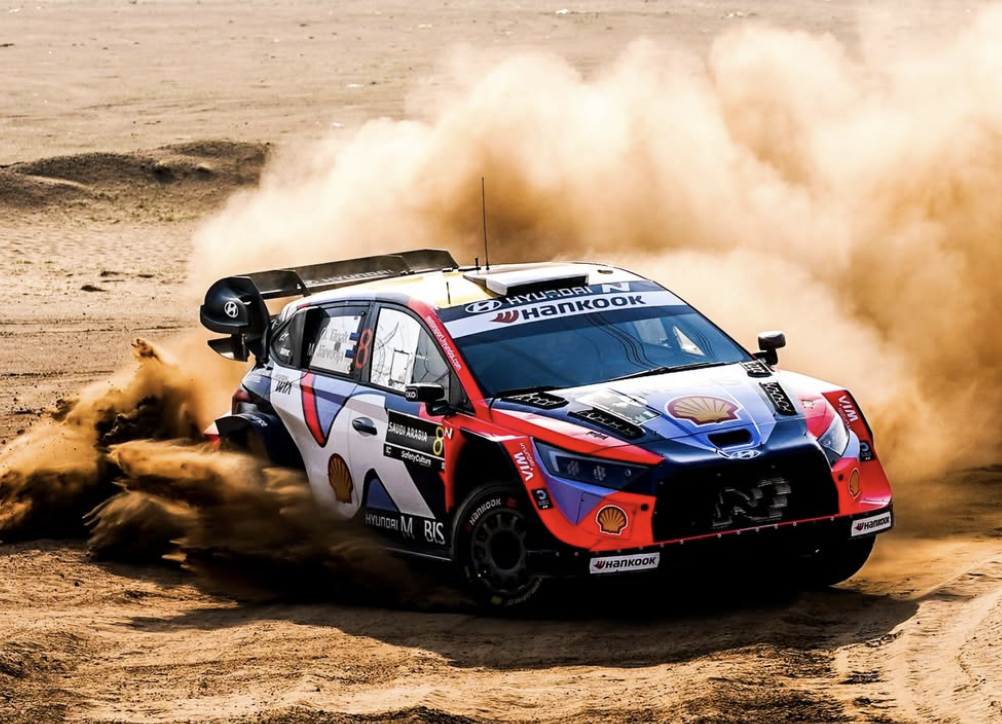 Los estonios Ott Tänak y Martin Järveoja (Hyundai i20 N Rally1 n°8) consiguieron cinco victorias de tramo en el Rally de Arabia Saudí y terminaron terceros en el Power Stage.