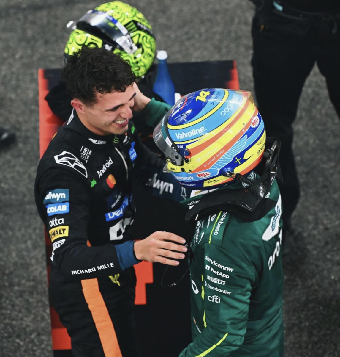 De la última carrera de la temporada dijo que «no sé si fue un poco aburrida, desde el coche fue larga y aburrida, pero desde fuera no lo sé. Seguí un poco, solo vi que Piastri iba primero en mucha parte de la carrera, pero supongo que era porque no había parado todavía, entonces estaba un poco ahí confundido, no podía seguirla del todo y tampoco me apetecía preguntar al equipo si había parado Piastri o no, porque iban a pensar que estaba a otra cosa y no a lo mío», reconoció sobre la lucha por las primeras plazas, admitiendo que «los tres lo merecían y solo uno puede ganar. Lando fue el mejor este año, pero los tres han hecho un trabajo increíble», relató.
