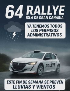 Todo ello propicia muchas dudas, ante lo que la Escudería Maspalomas responde, que desde hace varias fechas la organización cuenta ya con todos los permisos administrativos pertinentes para la celebración de la prueba y el objetivo es seguir adelante con total normalidad, salvando esas condiciones meteorológicas adversas previstas por la Agencia Estatal de Meteorología.