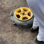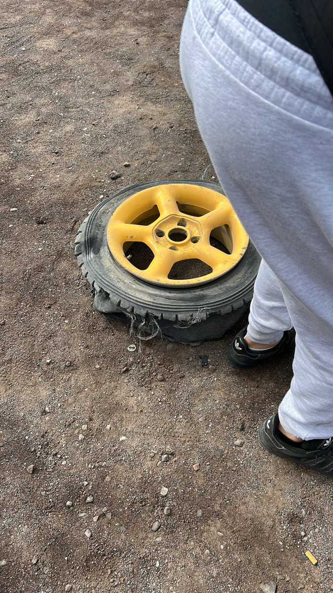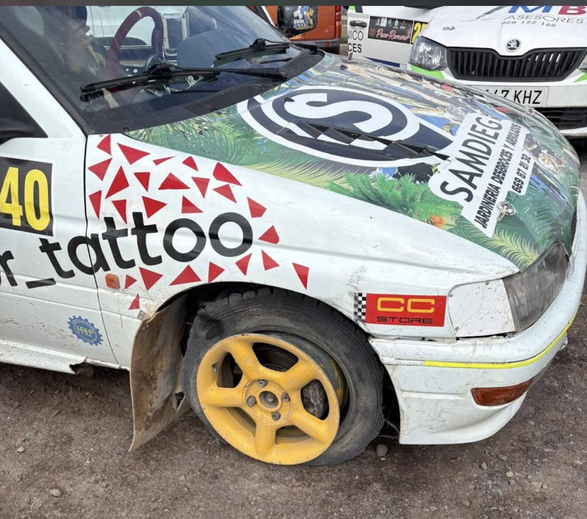 La primera pasada sufría un pinchazo. Al llegar a la asistencia fue reparado. Gran error, ya que habíamos rodado mucho con ella vacía.
