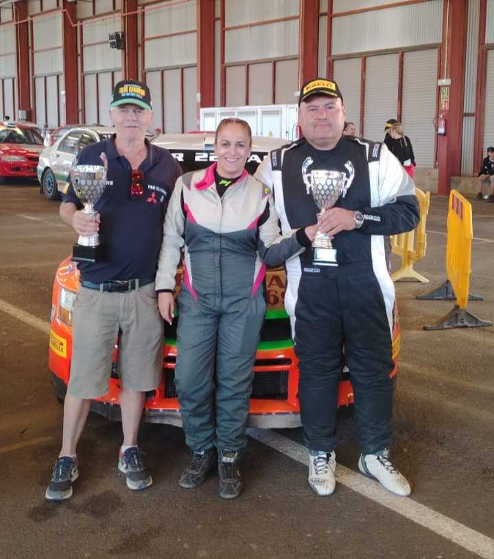 Fran Álamo y Rita Rodríguez compitieron en el Campeonato de Slalom de Gran Canaria en su Mitsubishi Lancer Evo V, finalizando terceros absolutos.