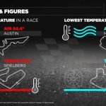 Como siempre, las temperaturas también han influido en el comportamiento de los neumáticos. La temperatura de pista más alta registrada durante una sesión fue de 58,2ºC en Yeda durante la FP2, mientras que la temperatura ambiente más elevada fue de 39,1ºC grados centígrados en Baréin durante la FP1. Las condiciones más frías se dieron en Las Vegas, con 12ºC en pista y 11,8ºC de temperatura ambiente durante la clasificación. En carrera, la temperatura máxima de la pista fue de 55,2ºC en Spielberg, mientras que la temperatura ambiente más alta fue de 34,4ºC en Texas. Los registros más bajos fueron de 15ºC en el asfalto de Las Vegas y de 14,3ºC de ambiente en Melbourne.