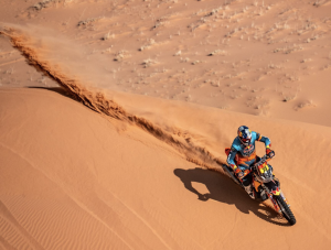 Ha sido muy intensa la primera semana del piloto de KTM, marcada por un inicio triunfal con victoria en el prólogo y la primera etapa, seguido de un golpe duro ayer por problemas mecánicos y penalizaciones cuando lideraba la etapa. «Hoy no iba a tomar riesgos extra sin estar luchando por la general. Pero ganar alguna etapa de aquí al final seguro que voy a intentar», afirmó el piloto.