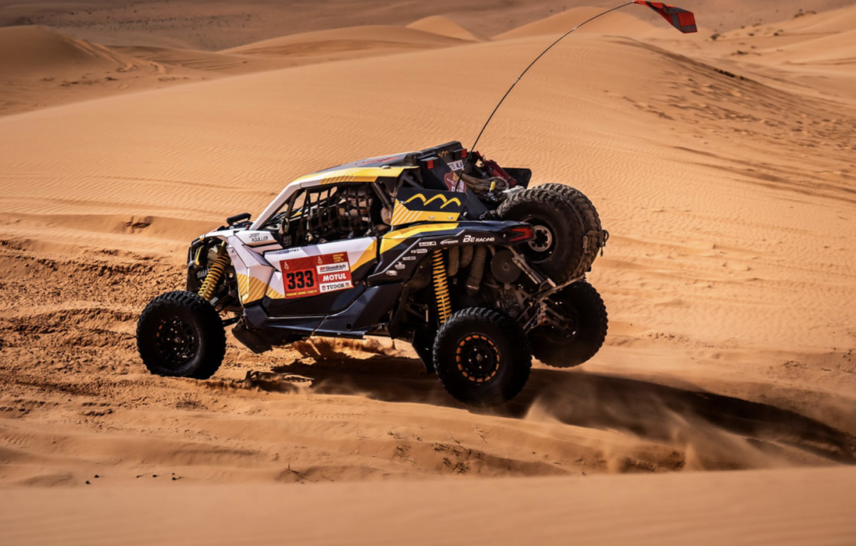 Joan Font y Adrià Guillem ya tienen prácticamente la mitad del trabajo realizado. Tras seis extenuantes etapas y más de 3.500 kilómetros recorridos, la dupla catalana del equipo BE Racing ya se encuentra en Riad, donde mañana podrá disfrutar de una merecida jornada de descanso. Font y Guillem han llegado a prácticamente el ecuador de la carrera con otra demostración de fiabilidad y regularidad en una sexta etapa larga y dura, con un recorrido íntegramente sobre arena y dunas, que el dorsal 333 ha sorteado con eficacia.