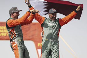 “La carrera nunca ha estado tan abierta en toda la historia del Dakar”, declararon al unísono todos los pilotos que, de una forma u otra, aspiraban a la victoria ante la multitud de campeones y bólidos inscritos en la 48ª edición. La unanimidad de esta declaración confiere un valor adicional al título de 2026, que engrosa una colección que incluye ahora seis Touaregs que se exhibirán con orgullo en la sala de trofeos del museo Al Attiyah. Este título tiene más peso si cabe por haber sido conquistado tras una carrera que ha dominado de principio a fin, con sangre fría, una estrategia cuasi milimétrica y un plan de batalla magistral articulado en torno a dos jornadas decisivas para las que debía garantizar, sí o sí, una posición de salida idónea. La primera no era sino la sexta etapa, un desfile de dunas de 300 kilómetros, en la que el arquitecto debía colocar la primera piedra de su monumento. En el seno de una élite apiñada como nunca (con los cinco primeros de la general en una horquilla de 12 minutos en la jornada de descanso), Nasseriniciaba el camino de vuelta a Yanbu en lo más alto de la tabla. Por supuesto, había que mantener la posición en la segunda etapa maratón-refugio, pero fue al día siguiente de esta delicada prueba cuando colocó la piedra angular en lo alto del monumento. Segundo en la etapa detrás de Mathieu Serradori, Al Attiyah se desmarcaba definitivamente de sus rivales. Para rematar la faena, el maestro de las pistas sacó toda su furia rumbo a Yanbu para ganar la penúltima etapa, que venía acompañada de una buena dosis de prestigio y simbolismo. Al conquistar su 50ª etapa se codeaba con gigantes de la talla de Ari Vatanen y Stéphane Peterhansel. ¡La obra de un genio, cual Miguel Ángel de los rally raids!