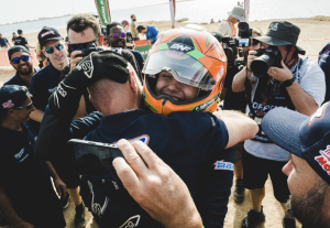 Inmediatamente después, Navarro desbordó emoción: «Ahora veníamos y Jan me iba gritando y yo iba riendo. Estoy en shock. Le he empezado a pegar en la cabeza, que no sé si le he hecho daño. Es esto muy emocionante. Ahora recuerdo todo lo que hemos pasado, porque lo he pasado muy mal en el Dakar. Que dos críos ganemos el Dakar es bastante irónico. Estar aquí es muy complicado. El lunes tengo que volver a trabajar. Creo que los dos nos compenetramos muy bien y podemos ser una muy buena pareja en el futuro y es algo que alguien lo tiene que ver. Esperemos que lo vean y salga un proyecto para que este año podamos demostrar lo que somos».