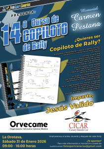 El próximo domingo, 25 de enero, se cierra el plazo de inscripciones de la próxima 14º edición del Curso de Copiloto de FSC, a celebrar el próximo sábado 31 de enero en Orvecame, en el Polígono Industrial San Jerónimo de La Orotava, en Tenerife.