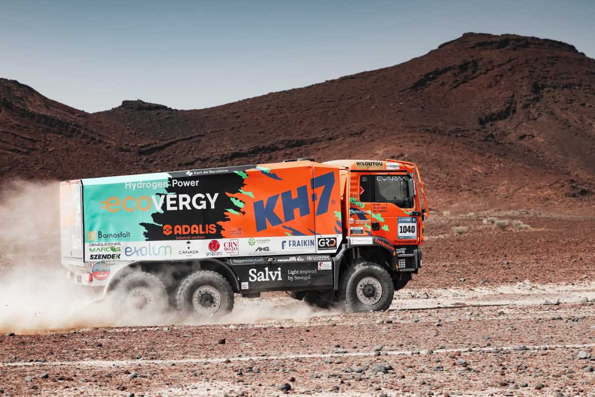 -La compañía española ha desarrollado el primer sistema de alimentación híbrido de hidrógeno y eléctrico de la historia de la carrera, integrado en el camión del KH-7 ECOVERGY Team.