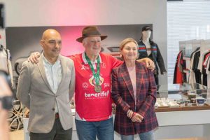 Rafael Lesmes (Piloto Dakar por la Vida): «Es un lujo estar en las Centro Porsche Canarias, les agradecemos mucho que nos brindaran su espacio para esta presentación. Mejor sitio, imposible. Obviamente, agradecerles el patrocinio, que llevan con nosotros desde que les presenté el proyecto. Todos los patrocinadores, tanto privados como de administraciones, están muy involucrados con el proyecto, que es algo más que un proyecto deportivo. Nunca pensé que llegaríamos a esta dimensión. Poder ser representante o embajador de las personas afectadas por el cáncer de mama, a mí me está haciendo muy feliz. El mayor trofeo que puedo recibir es su cariño y aprecio, y también es la mayor motivación para seguir luchando cuando las cosas se ponen complicadas en el Dakar. Esa sensación que tengo de que la marea rosa con el punto azul nos lleva, la sigo manteniendo. Y creo que este año se ha demostrado más que nunca».
