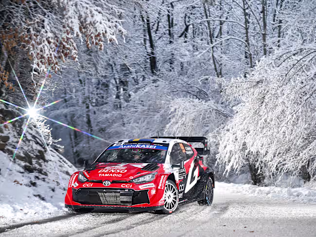 Sin embargo, más temprano ese mismo día, el rally de Solberg estuvo a punto de desbaratarse en la segunda pasada por La Bréole/Bellaffaire. En condiciones que cambiaban rápidamente, se vio atrapado por una placa de nieve y se deslizó por una valla hacia un campo nevado. El sueco, de alguna manera, mantuvo su GR Yaris Rally1 en movimiento, se reincorporó a la carretera y, sorprendentemente, logró marcar el mejor tiempo de la etapa.