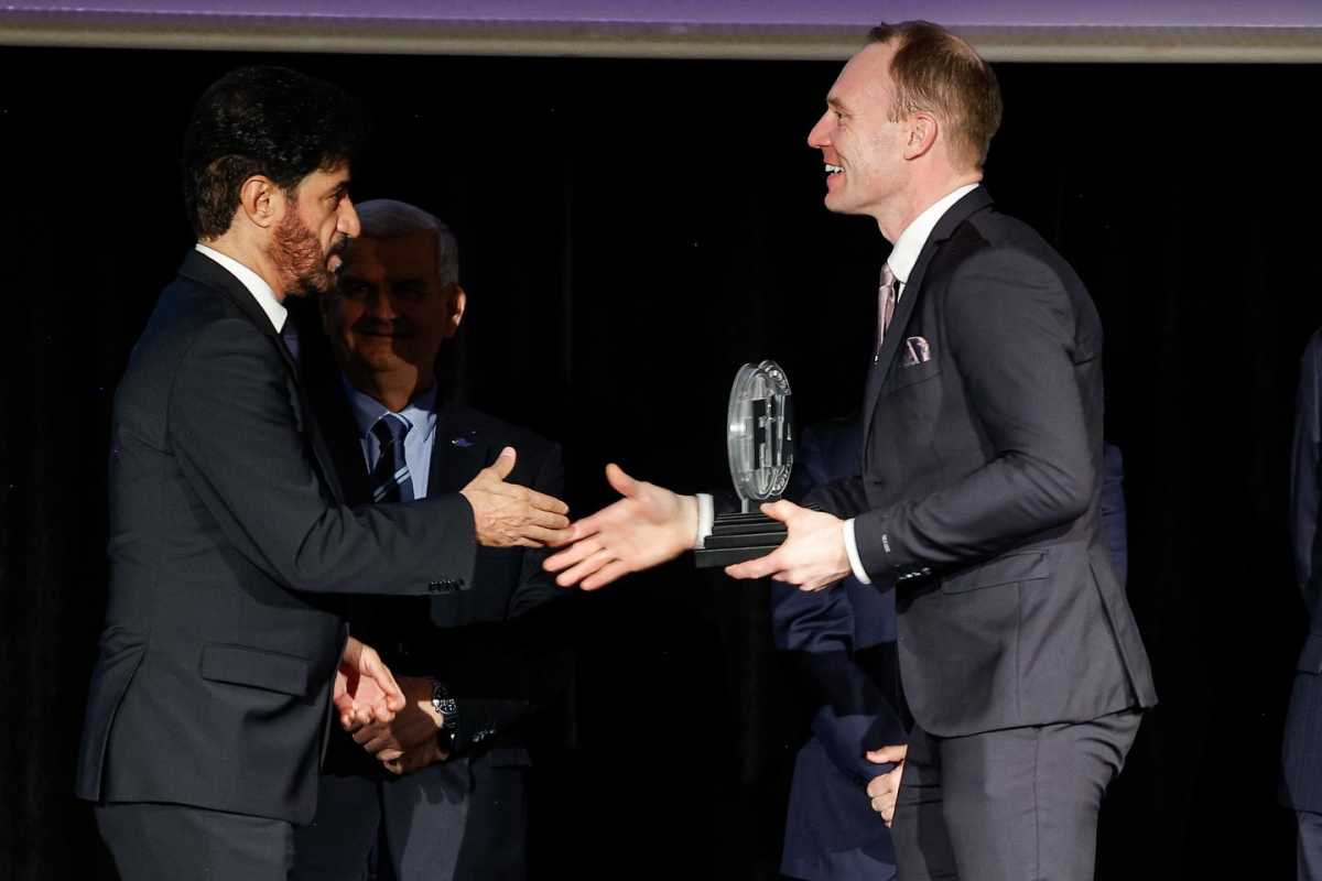 Honrado de recibir el trofeo del Campeonato Histórico de Europa de Rally en la ceremonia de los Premios Históricos de la FIA en París