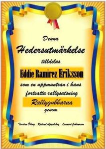 Cuando Eddie está en la tarima empiezan a comentar el motivo por el que llaman a Eddie de nuevo, desvelando los organizadles que era un premio especial por su carrera y su gran temporada 2025 con su Polo, luchando contra coches mucho más potentes. A Eddie le dan una copa a través de «Rallygubbarna» eb Suecia y le donan 2.000€ para su temporada 2026.
