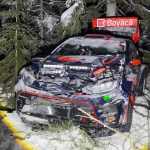 Los españoles Álex Villanueva y Axel Coronado rodaban en la trigésima posición de la general del Rally de Suecia y en la décimo quinta plaza entre las unidades Rally2, pero en la sexta especial de la segunda cita del Campeonato del Mundo de Rallys (WRC) sufrían una fuerte salida de carretera, quedando seriamente dañado su Toyota GR Yaris Rally2, quedando fuera de carrera.
