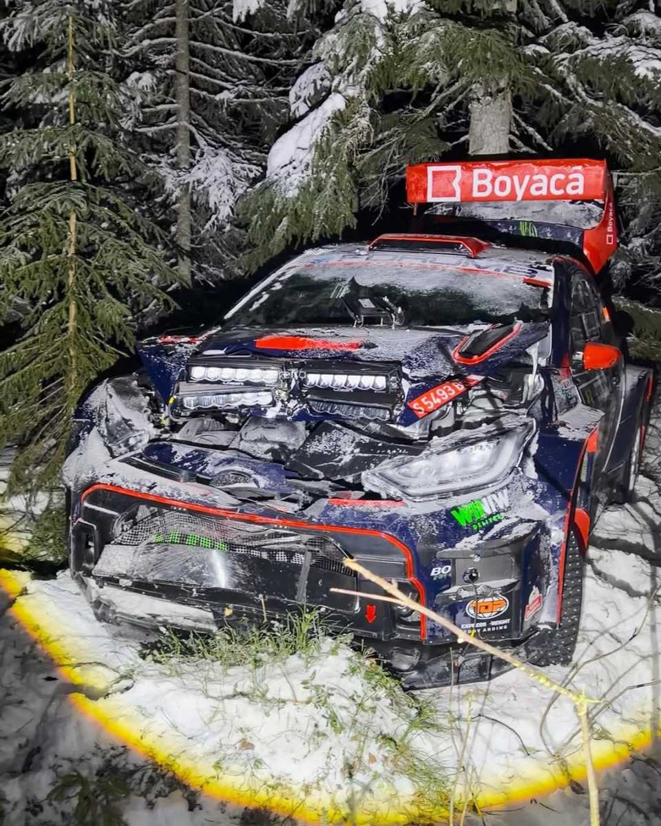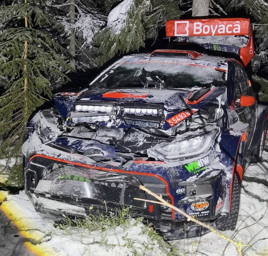 Los españoles Álex Villanueva y Axel Coronado rodaban en la trigésima posición de la general del Rally de Suecia y en la décimo quinta plaza entre las unidades Rally2, pero en la sexta especial de la segunda cita del Campeonato del Mundo de Rallys (WRC) sufrían una fuerte salida de carretera, quedando seriamente dañado su Toyota GR Yaris Rally2, quedando fuera de carrera.