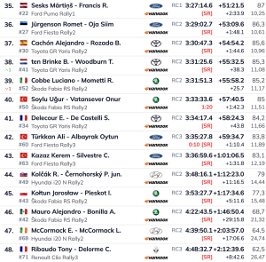 M-Sport Ford colocó dos autos dentro de los nueve primeros, con Jon Armstrong octavo y Josh McErlean noveno, mientras que Mārtiņš Sesks mostró un ritmo ganador de etapa a pesar de los contratiempos del viernes.